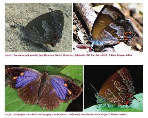 Euaspa motokii, Koiwaya, 2002, a newly recorded butterfly species from Bhutan. Its known distribution range extended from Kachin State of Myanmar to eastern Arunachal Pradesh and is now further extended to the Himalayan foothills of central Bhutan. Currently, Bhutan has two Euaspa species, pavo and motokii. With this record Bhutan now lists 760 species of butterflies.